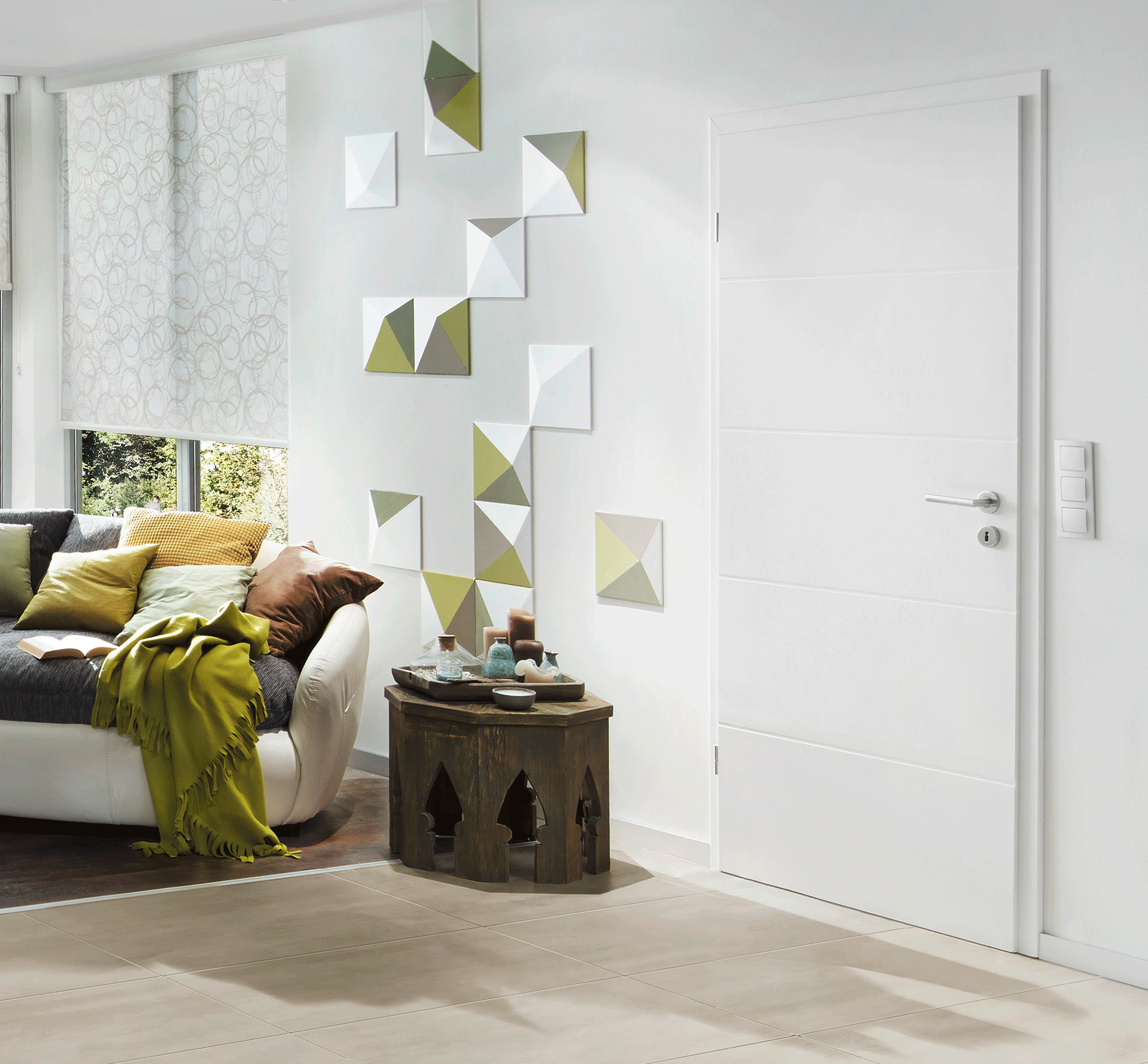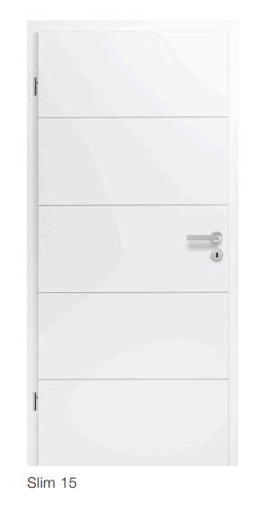 Die BaseLine Slim 15 präsentiert sich in Vier-Streifen-Optik mit präzise ins Türblatt eingefrästen Fugen und passt damit perfekt in ein modernes Wohnambiente. Dieses Modell ist in eckiger Kantenausführung und Lackoberfläche in Verkehrsweiß RAL 9016 erhältlich.