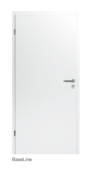 Das Modell BaseLine mit glattem Türblatt überzeugt mit seinem klassisch schlicht-elegantem Design. Es ist in eckiger oder runder Kantenausführung erhältlich und wird in den Dekoren Reinweiß RAL 9010 und Verkehrsweiß RAL 9016 sowie in vier Walzlackoberflächen angeboten.